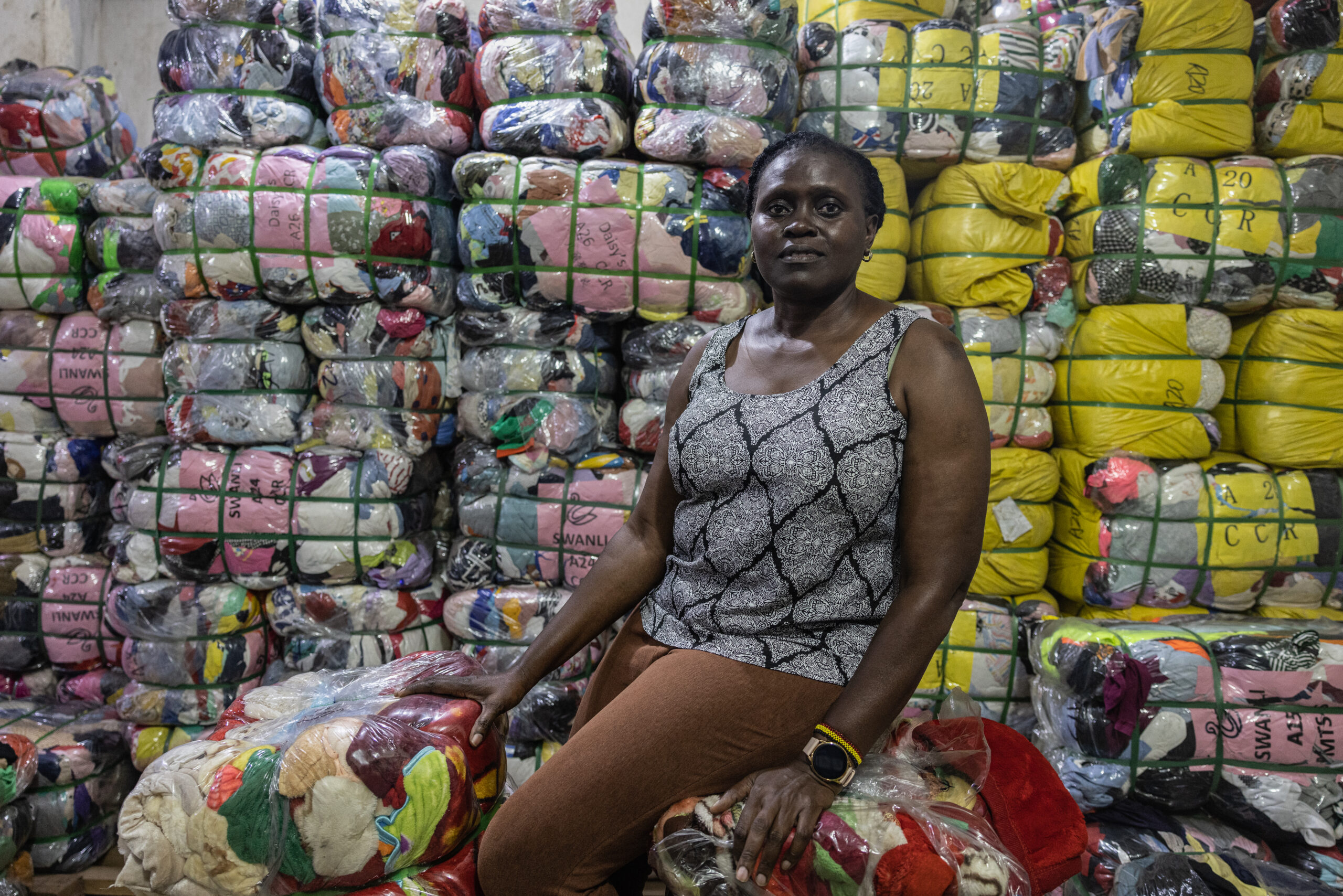Owino is just one of the many markets for secondhand clothing—known locally as mitumba—that exist across East Africa. It’s a trade that allows wealthier, mostly Western countries to export discarded clothing that might otherwise end up in landfills and provides livelihoods for millions of women in the region. The Mitumba Consortium Association of Kenya, a trade body, estimates that 4.9 million people in East Africa make their living from the trade, most of them women.