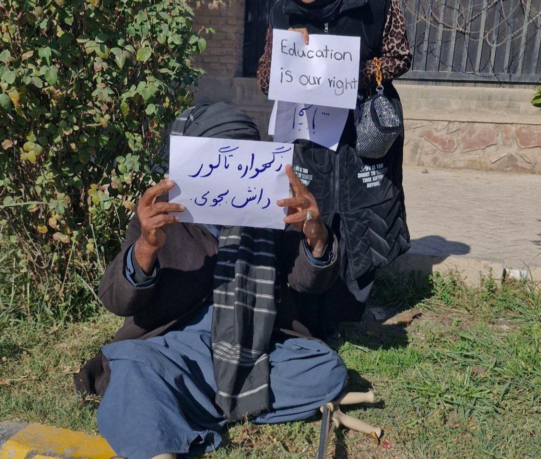 In western Afghanistan’s Herat province, one group protested in front of a government building carrying placards and chanting slogans like “education is our right” and “seek knowledge from the cradle to the grave”. Female students at a medical institute in the northeastern province of Badakhshan protested by singing – another proscribed activity for women in Afghanistan.