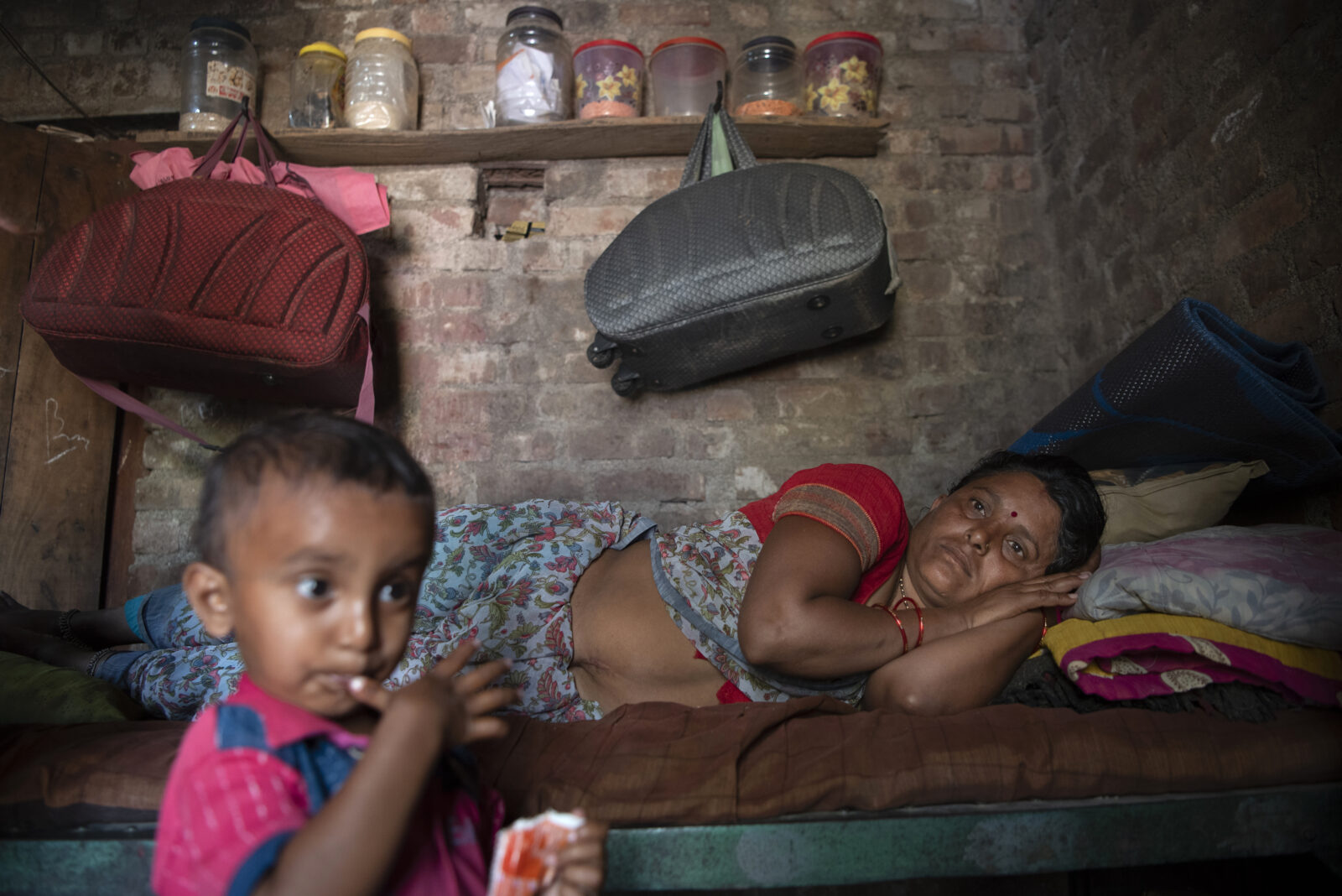 Archana Ashok Chaure with her son, Aditya. Since her hysterectomy, she has not been able to work without pain. (Saumya Khandelwal for The New York Times)